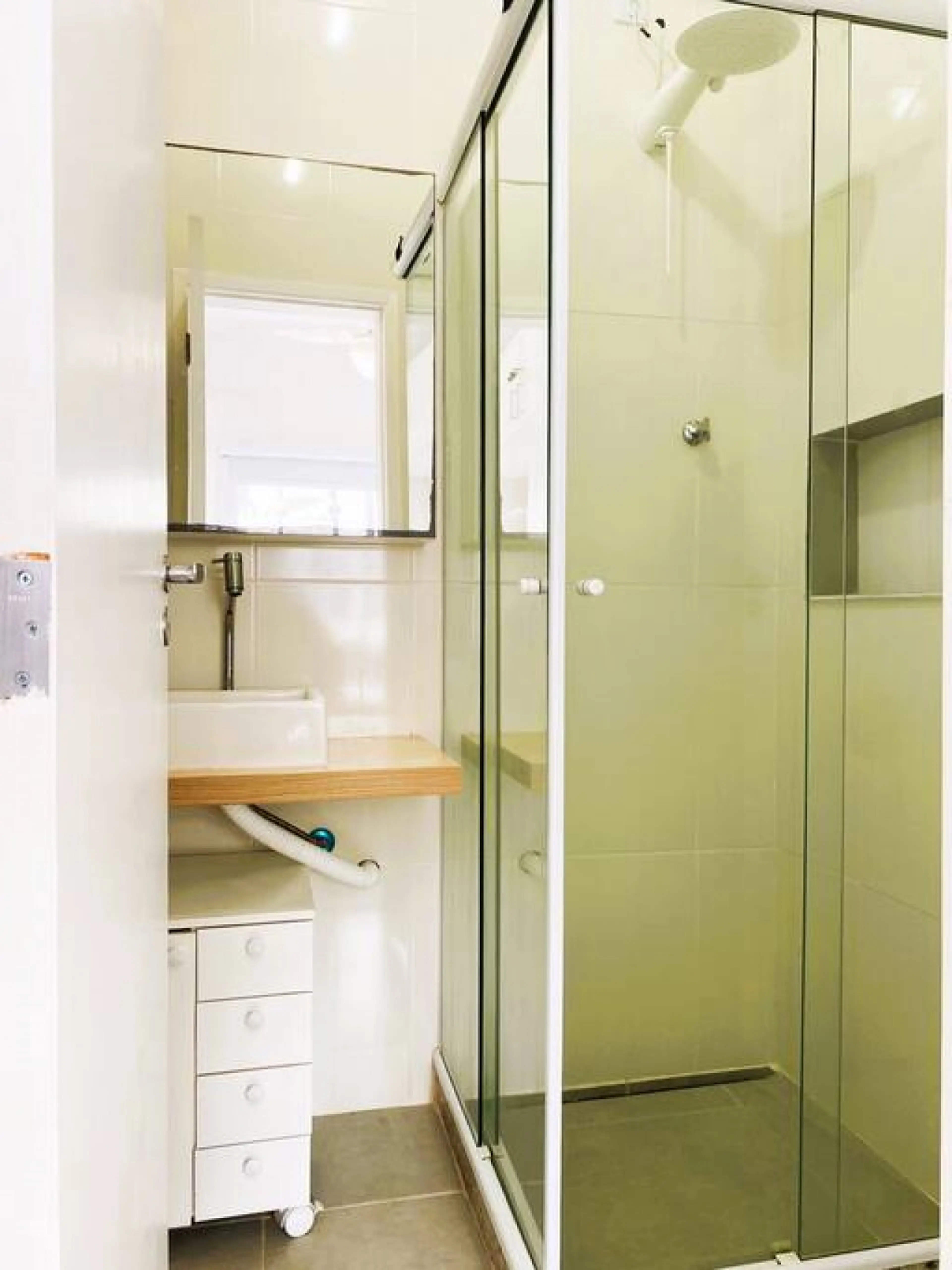 Positive: O apartamento tem um tamanho bom, é confortável e a geladeira e o chuveiro são ótimos.