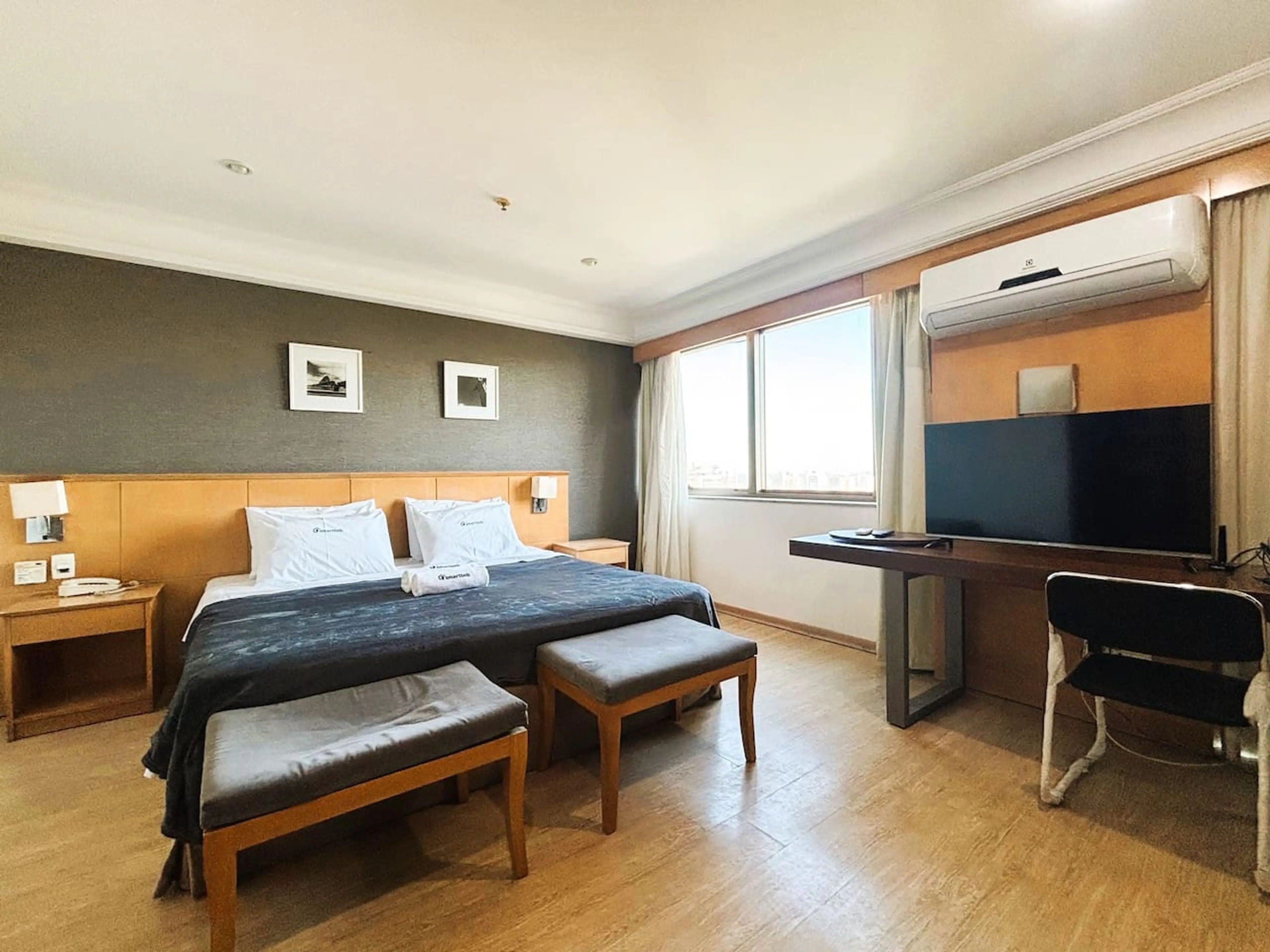 Quarto limpo, oferece toalhas e secador. Amplo arejado, ótima localização. Cama grande e confortável.
